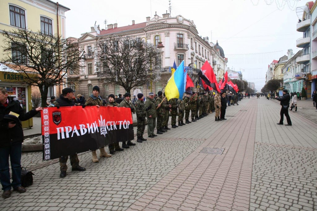 "Right Sector" Carpatia, 4th battalion of the DUK "Right Sector" together with the community celebrated the Day of Unity of Ukraine by march, laying flowers at the monument, dedicated to WUPR activists and honoring the memory of Ukrainian freedom fighters at the Memorial park of Ivano-Frankivsk.