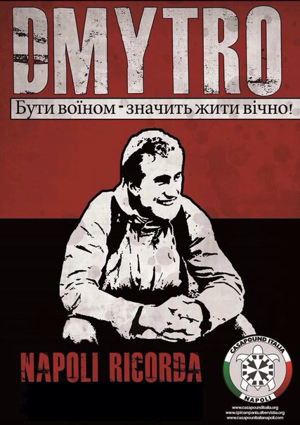 Besides the commemoration in Naples a banners with the inscription "To be a hero means live forever, Dmytro Presente!" were posted by the Casa Pound activists in about ninety Italian cities by the third anniversary of Dmytro Yakovets death.
